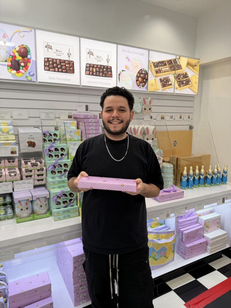 Nick Enigma visiting his local See’s Candy holding the Assorted Chocolates Gift Box.